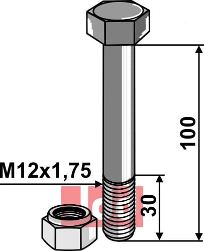 Hexagon Bolt M12 med selvlåsemutter M12x1,75, lengde 100 mm