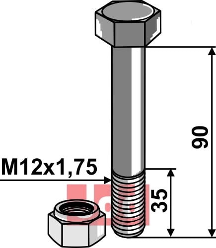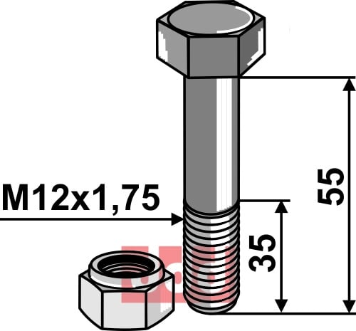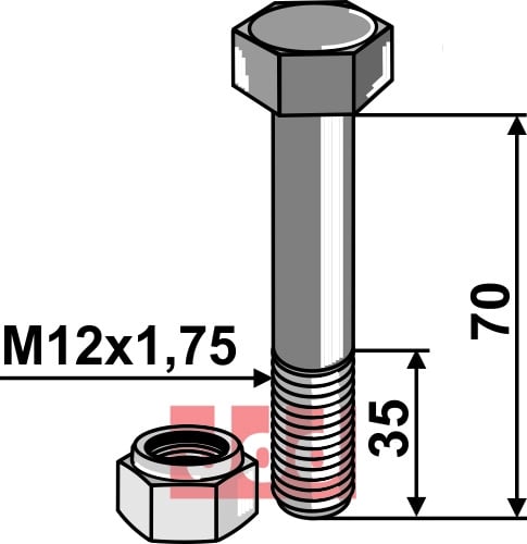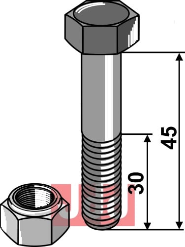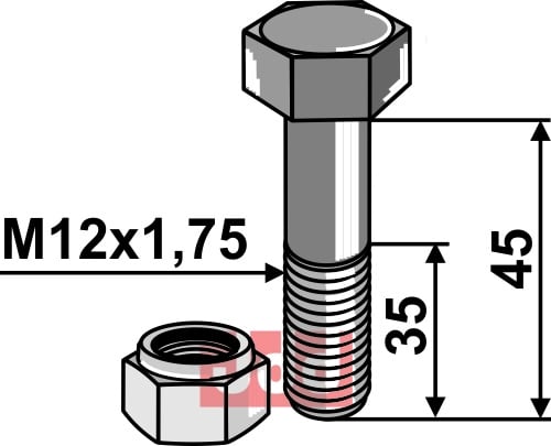 Hexagon Bolt M12 med selvlåsemutter M12x1,75, 45mm lengde