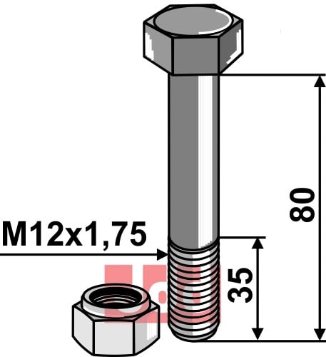 Hexagon Bolt M12 med selvlåsemutter M12x1,75, lengde 80 mm