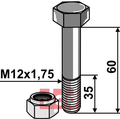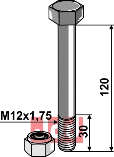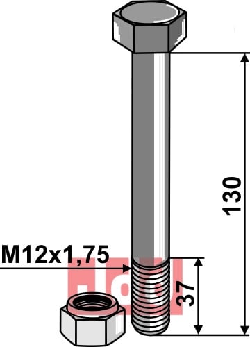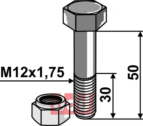 Bolt med selvlåsemutter M12 M12 - 8.8, passer til BOURGAULT