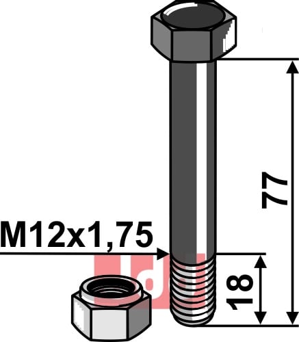 Hexagon bolt M12 med selvlåsemutter M12x1,75, lengde 77 mm