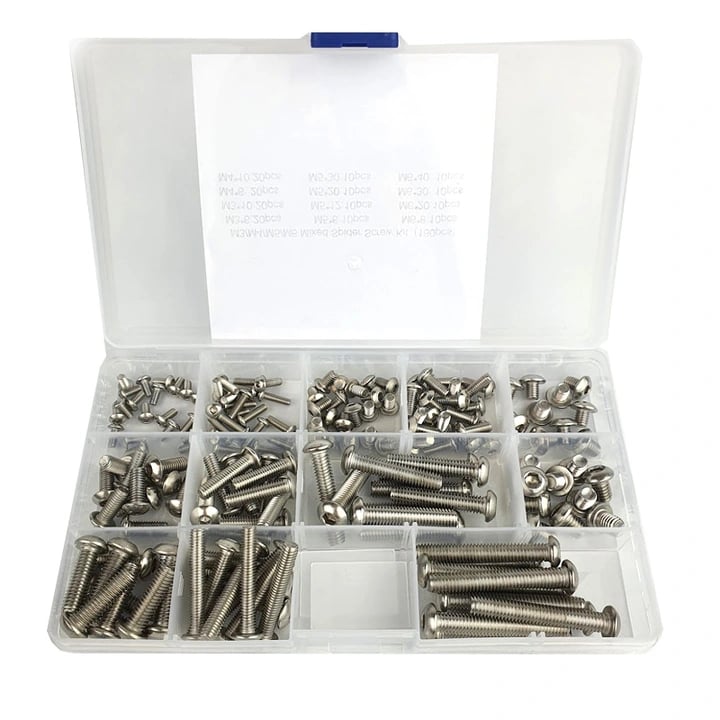 Skrue-sett med runde hoder, 160 stk M3 / M4 / M5 / M6