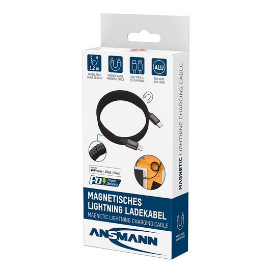 Ansmann ladekabel usb-c til lightning med magnetisk opprulling 120cm