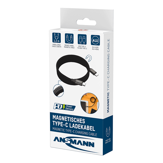 Ansmann ladekabel usb c-til-c. magnetisk opprulling 3 års garanti