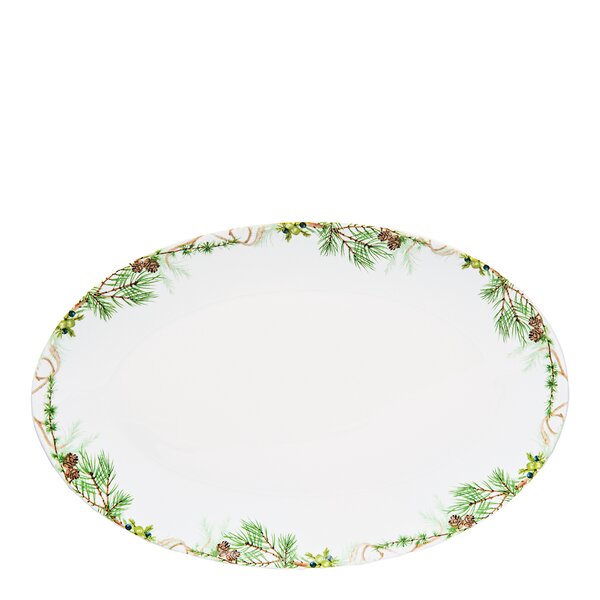 Magnor - Nostalgi serveringsfat 38x25 cm hvit/grønn