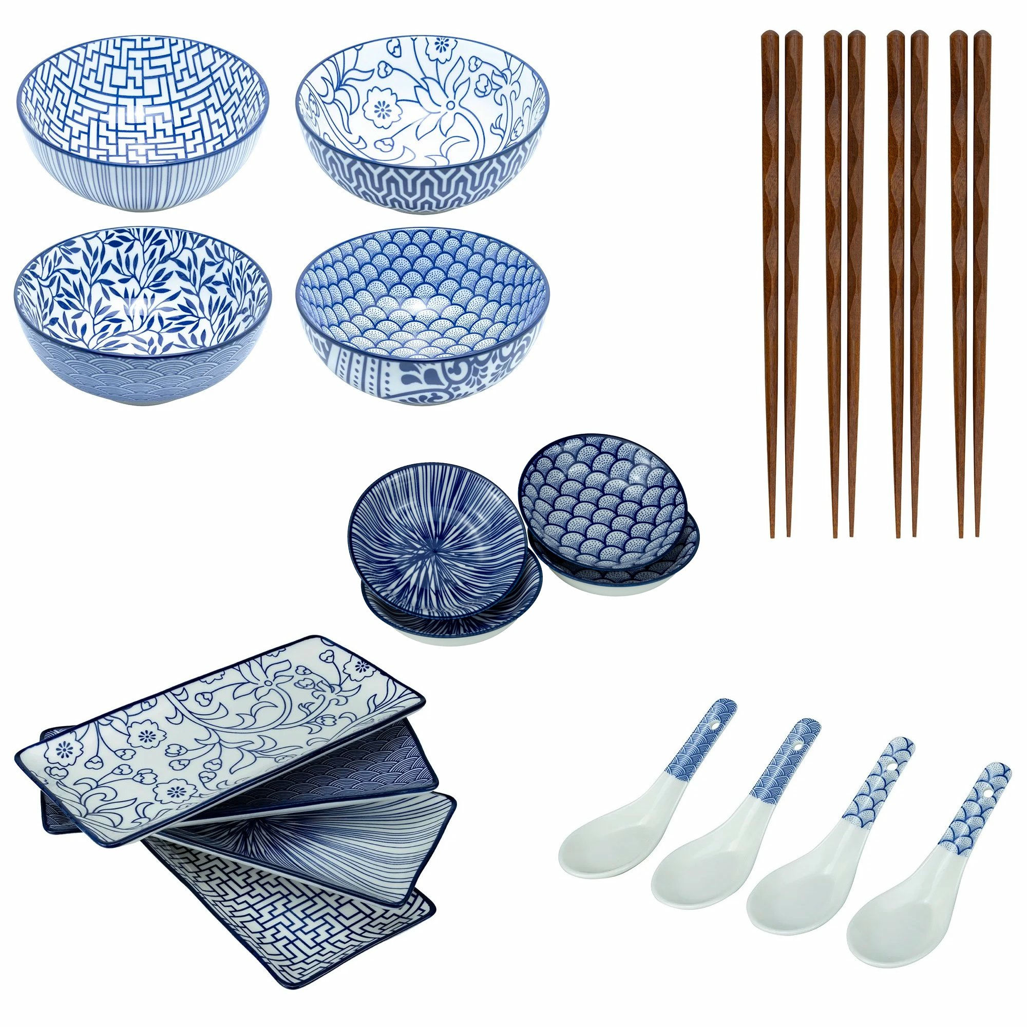 Mareld Akio ramen-bolle med skje og spisepinner 4-pakning
