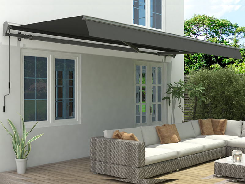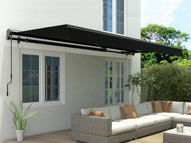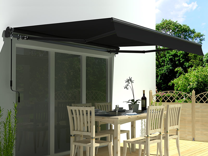 Markise m/sveiv, 3,95x2,5m, Svart/Svart ramme