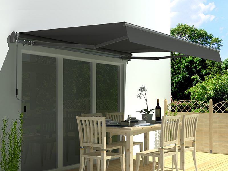 Markise m/sveiv, 3,95x2,5m, Grå/Grå ramme