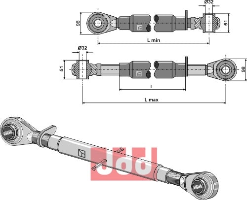 Overlenke M40x3 Max lengde 800 mm - M40x3