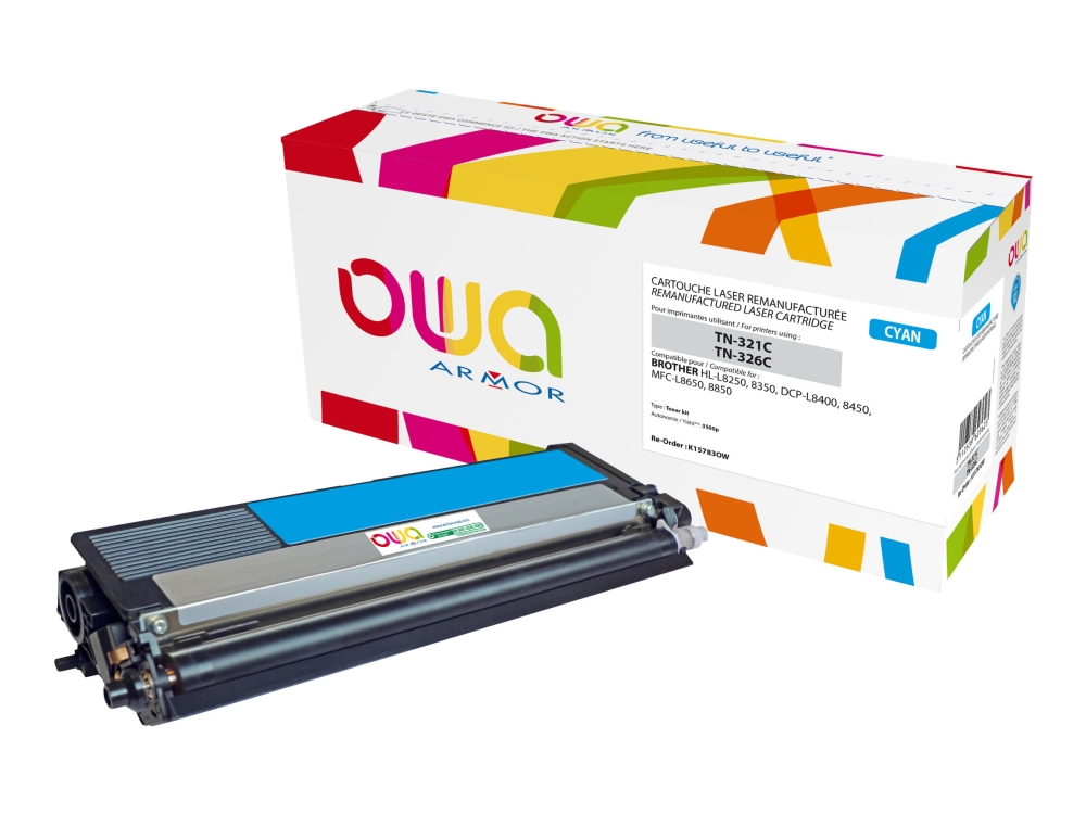 Owa - Cyan - Kompatibel - Gjenfabrikert - Tonerpatron (Alternativ For: Brother Tn321c, Brother Tn326c) - For Brother Dcp-L8400cdn, Dcp-L8450cdw, Mfc-L8650cdw, Mfc-L8850cdw