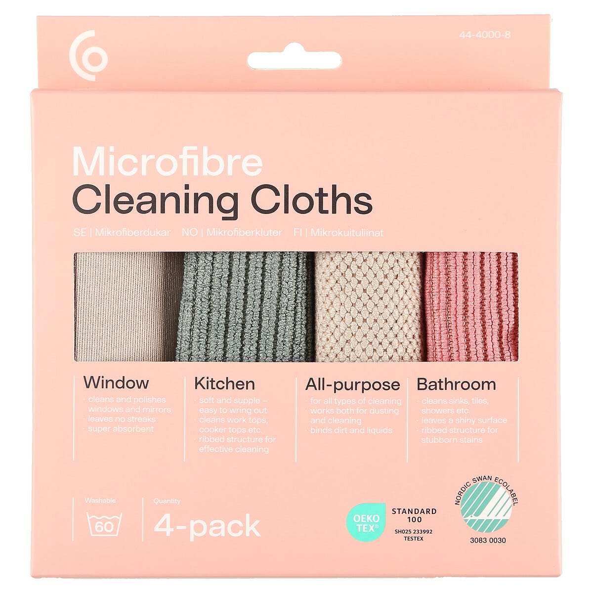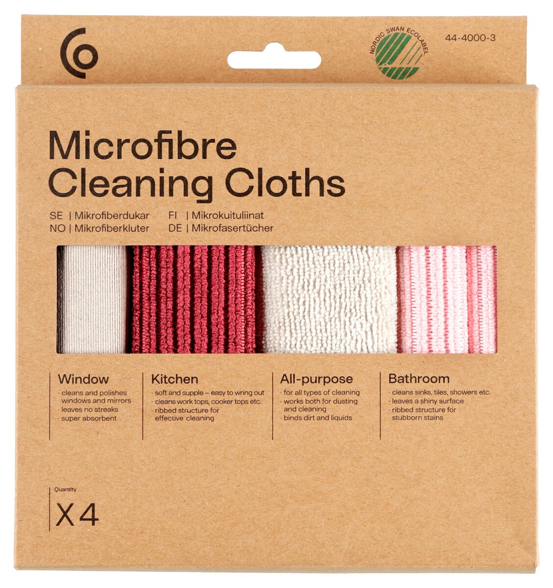 Mikrofiberklut 32 x 31 cm, 4-pakning