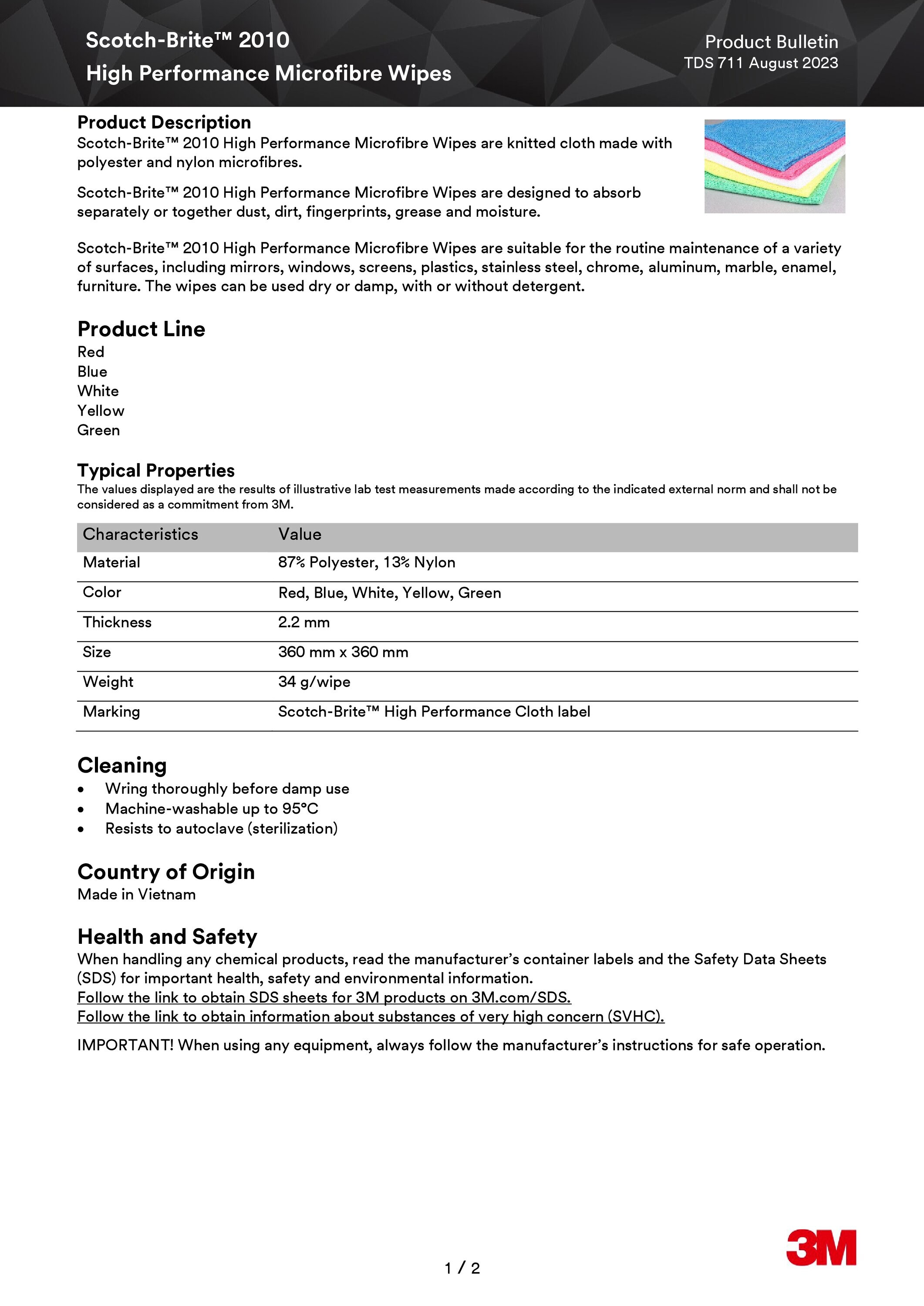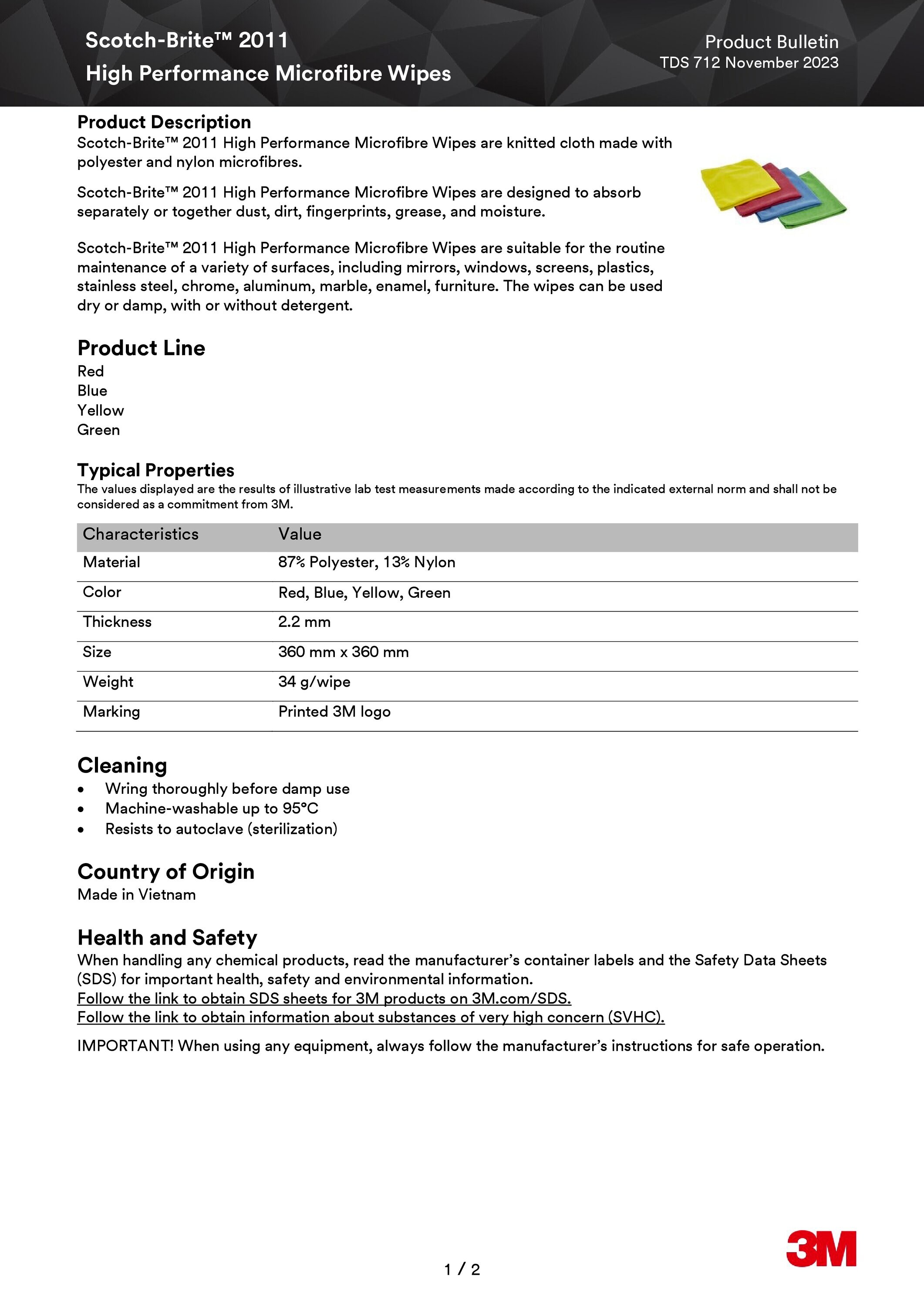 3m™ scotch-brite™ 2012 mikrofiberklut, grønn, 360 mm x 360 mm