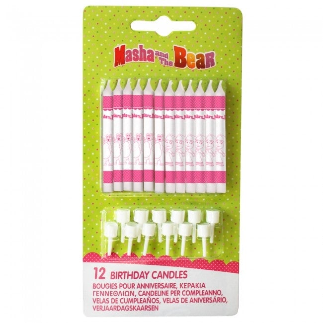 Masha Og Mishka Kakelys Med Holder, 12stk | Slikkepott.No