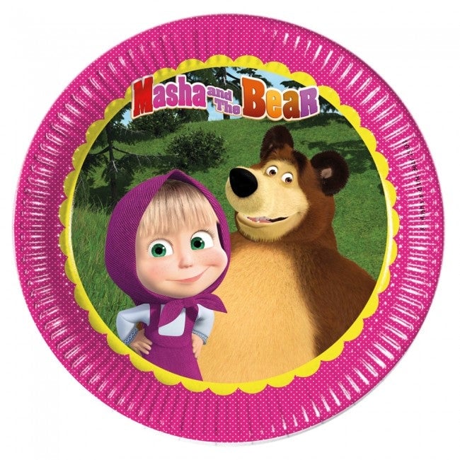Masha Og Mishka Papptallerken 23cm, 8stk | Slikkepott.No