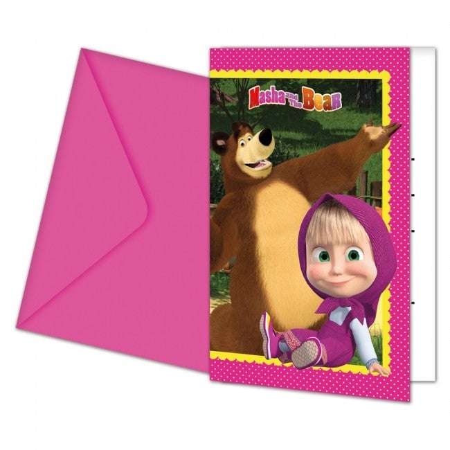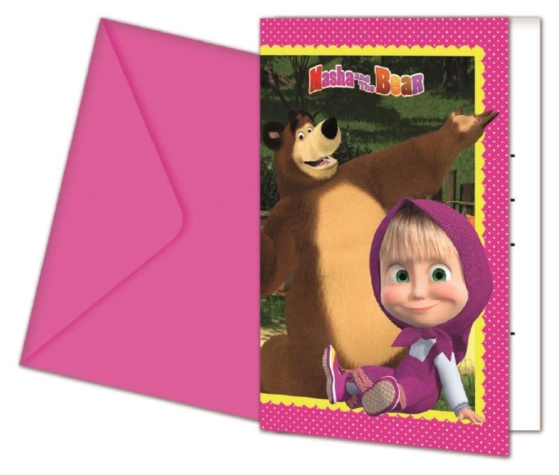 Masha Og Mishka Invitasjoner Med Konvolutt, 6stk | Slikkepott.No