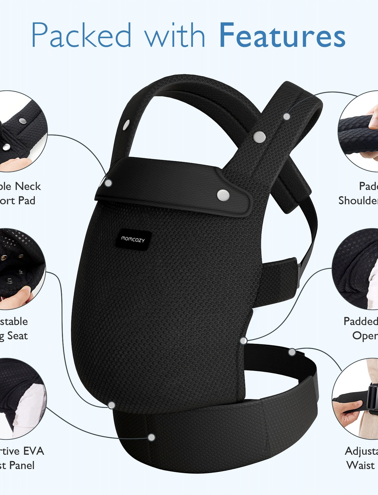 Momcozy Momcozy Newborn To Toddler Air Mesh Soft Structured Carrier Black - Black - ONE SIZE