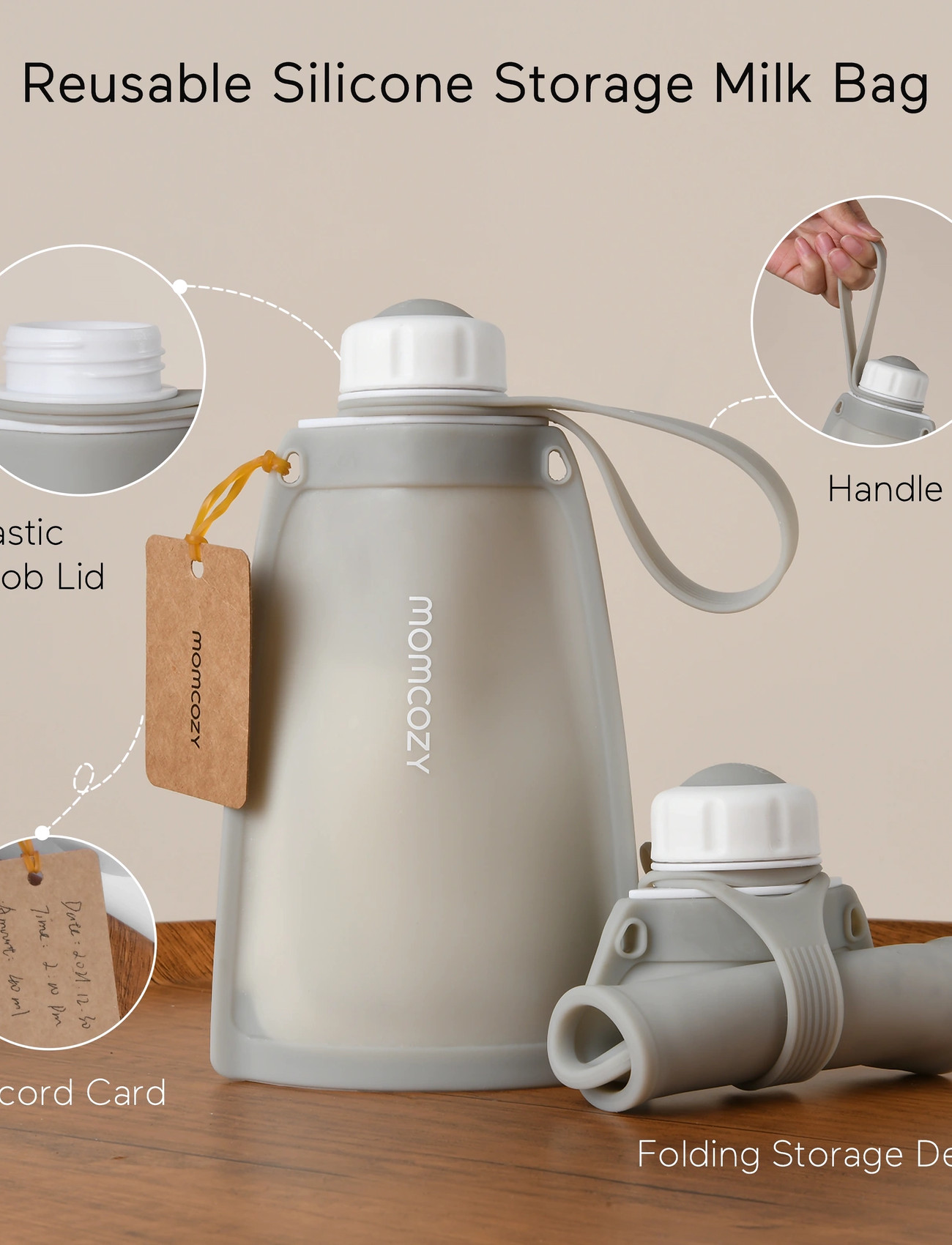 Momcozy Momcozy Silicone Milk Storage Bags Grey 5Pcs - Grey - ONE SIZE