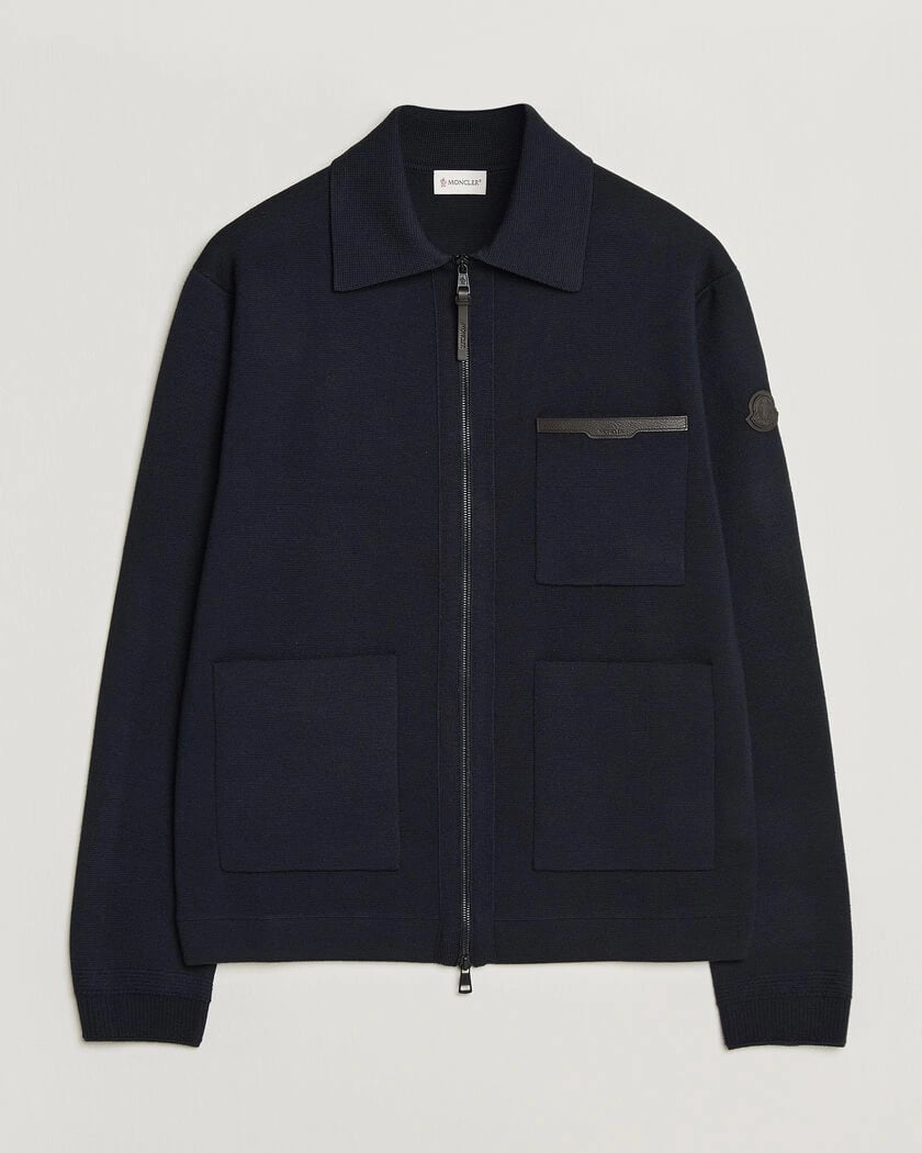 Moncler Zip Wool Cardigan Navy