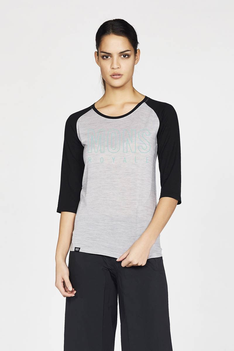 Mons Royale Phoenix 3/4 Raglan Surf Tee - Tropicana Grey Marl - XS