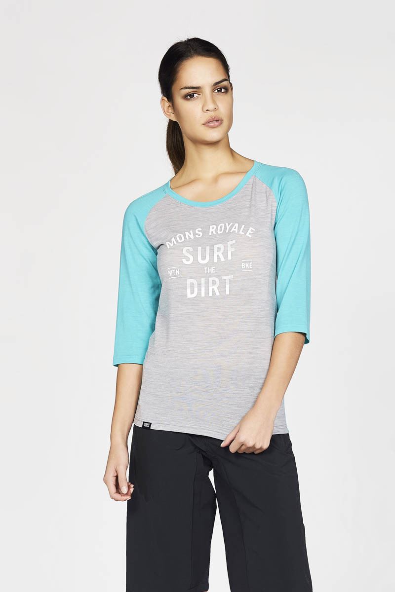 Mons Royale Phoenix 3/4 Raglan Surf Tee - Tropicana Grey Marl - M