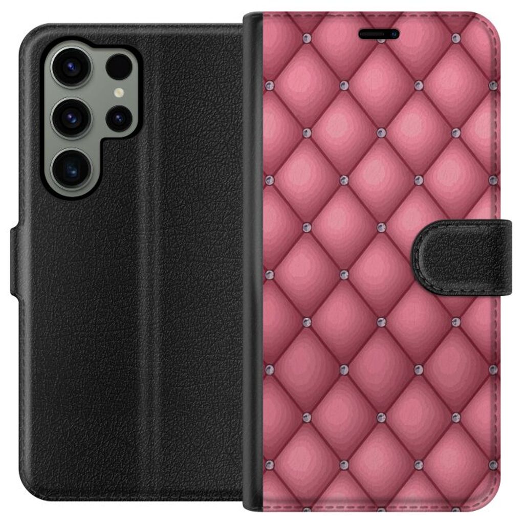 Samsung Galaxy S23 Ultra Sort Lommebokdeksel Exklusivt Rosa Mönster