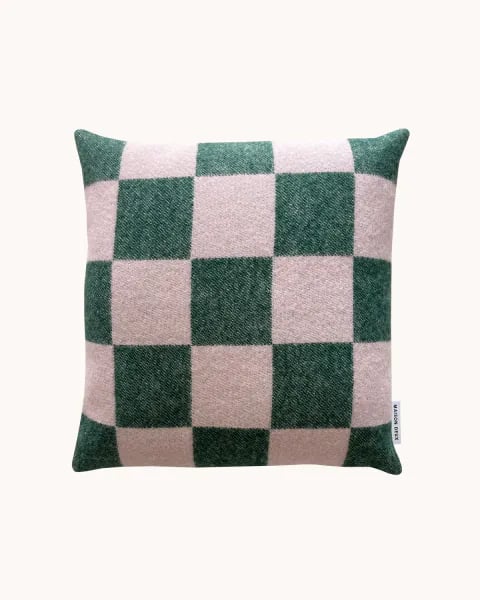 Maison Deux Checkerboard Putetrekk 50x50 Mørk Grønn/Rosa