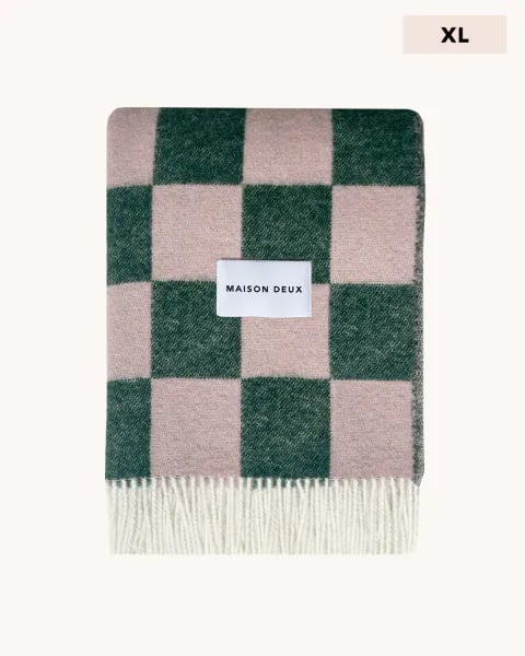 Maison Deux Checkerboard XL Pledd Mørk grønn/Rosa