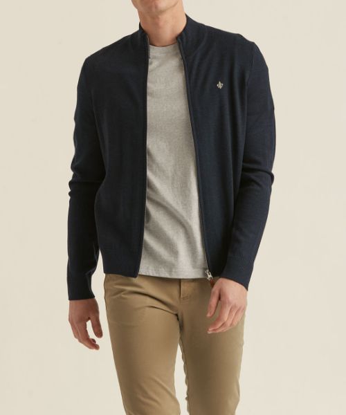 Morris stockholm - merino zip cardigan - mørkeblå - cardigan genser lang - herre