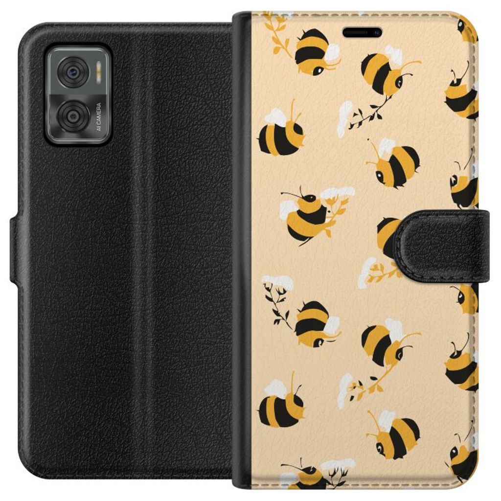 Motorola Moto E22i Sort Lommebokdeksel Humlor