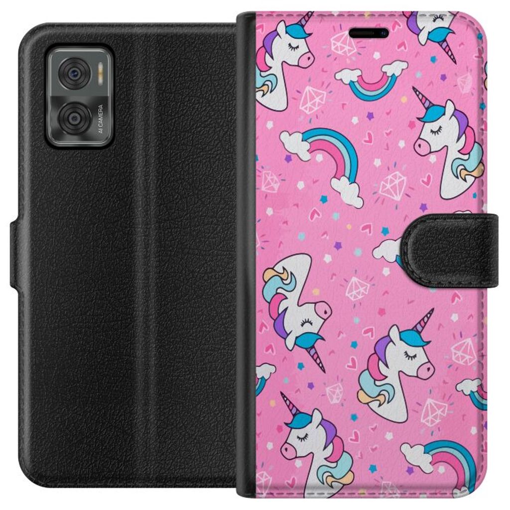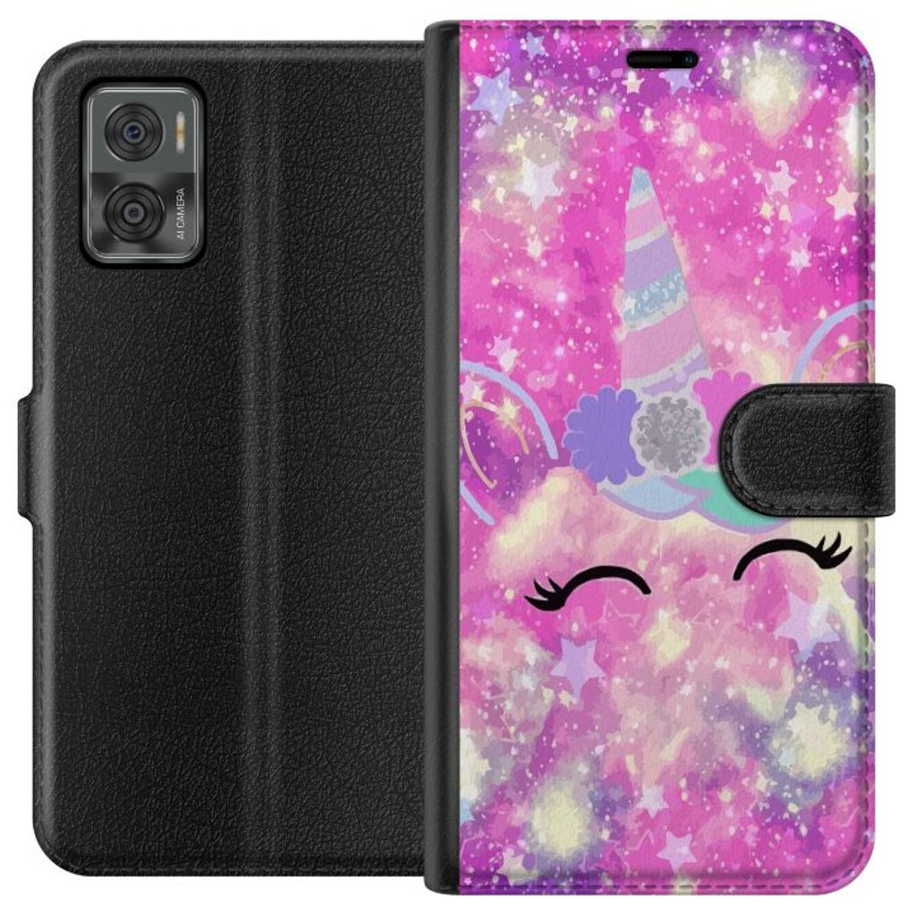Motorola Moto E22i Sort Lommebokdeksel Glad Enhörning