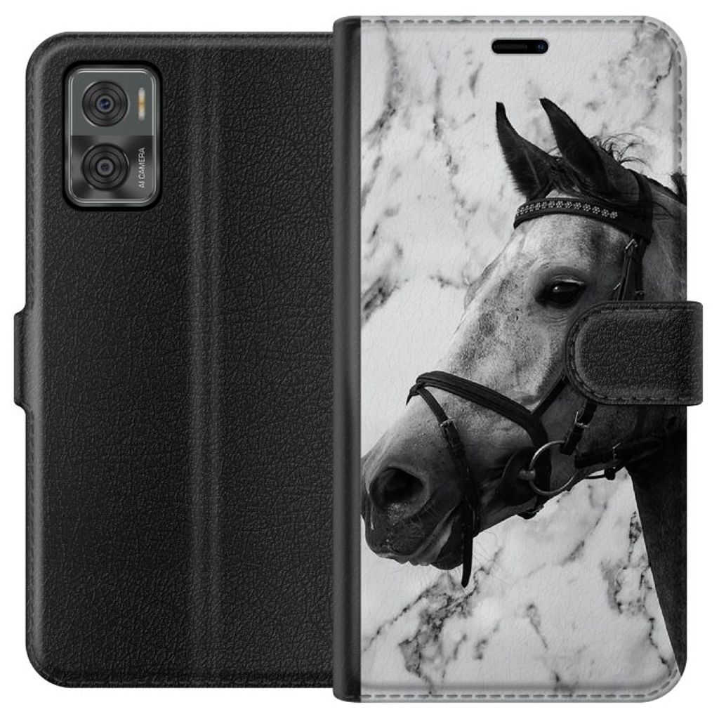 Motorola Moto E22i Sort Lommebokdeksel Marmor med häst