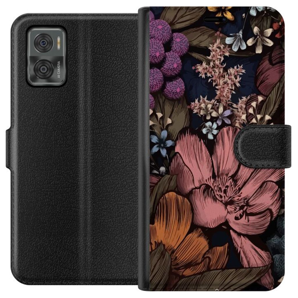 Motorola Moto E22i Sort Lommebokdeksel Tecknade blommor