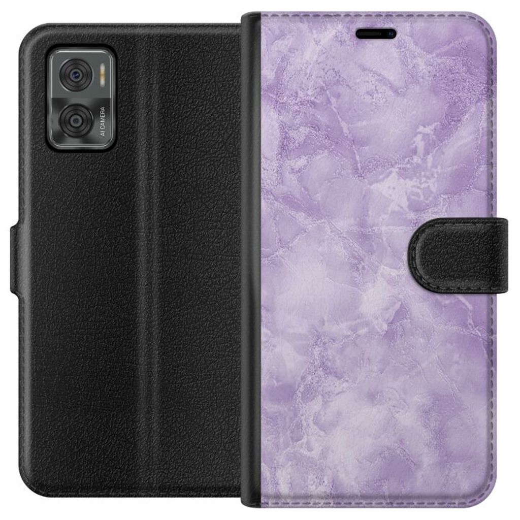 Motorola Moto E22i Sort Lommebokdeksel Lila marmor