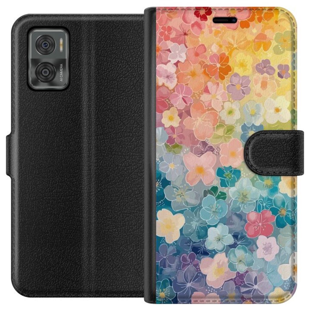 Motorola Moto E22i Sort Lommebokdeksel Färglada blommor