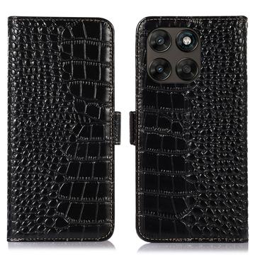 Motorola Moto G77/G67 Crocodile Series Lommebok-deksel i Lær med RFID - Svart