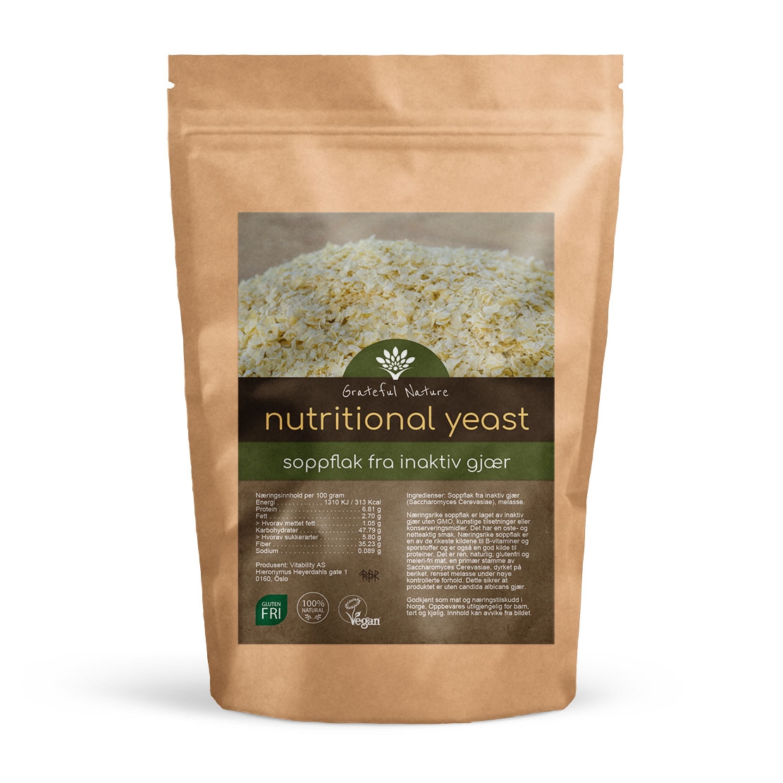 Grateful Nature Nutritional Yeast Flakes - Næringsgjær 500 g