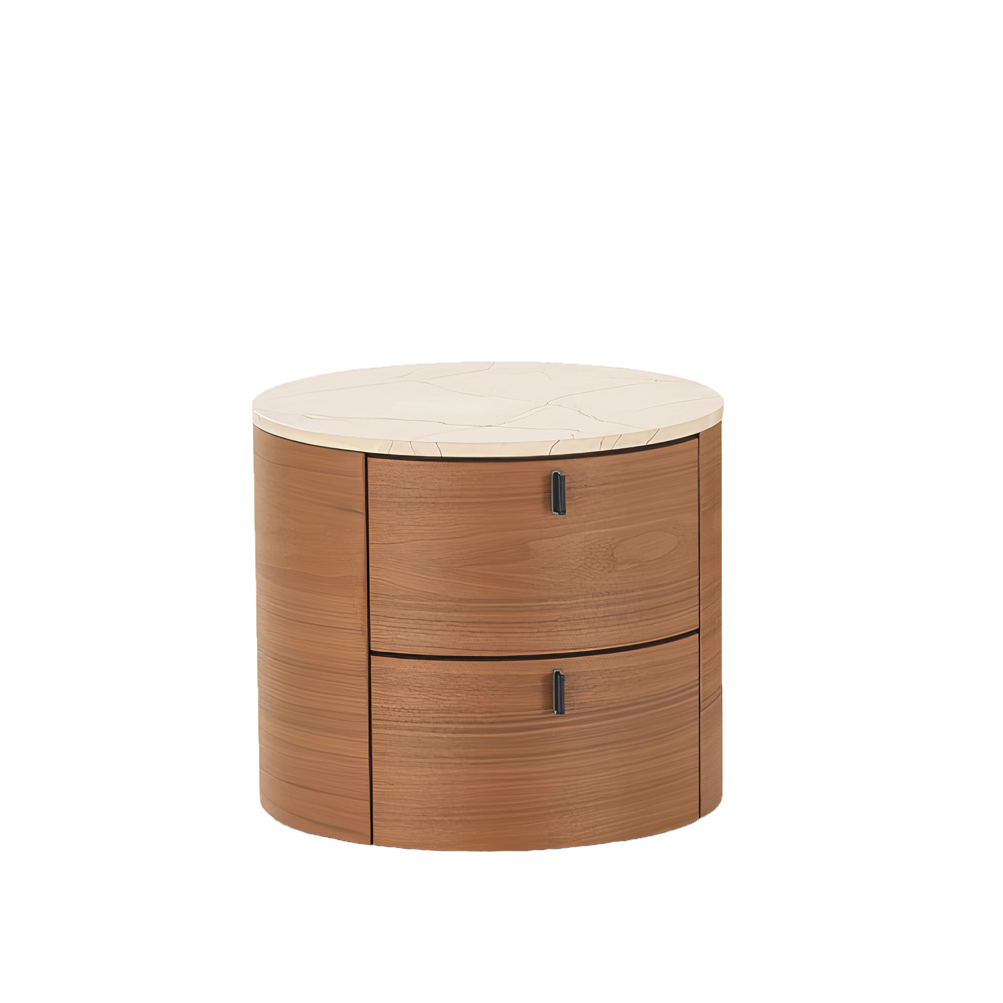 Poliform - Onda nattbord 2 skuffer, Structure Walnut Top Matt Zecevo, Handles Hide 2 Nero - Nattbord - Tre farget - Tre/Stein