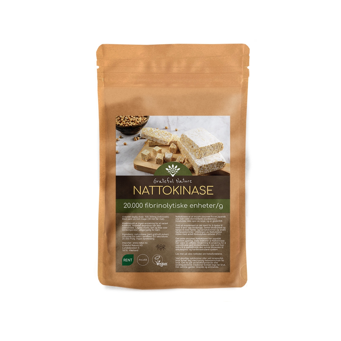 Grateful Nature Nattokinase 20000 FUg - Hjerte & Kar tilskudd Pulver 70g