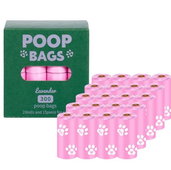 20 ruller rosa nedbrytbare hundeposer med lavendelduft (300 poser)