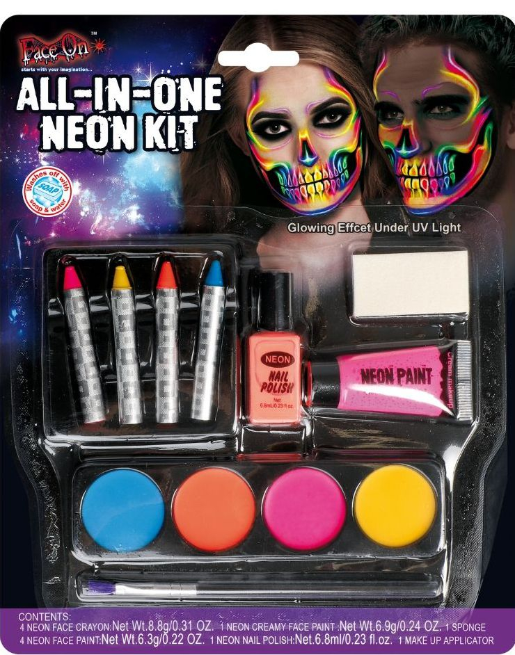 Neon Sminkesett med Neglelakk og Forskjellig Ansiktssminke