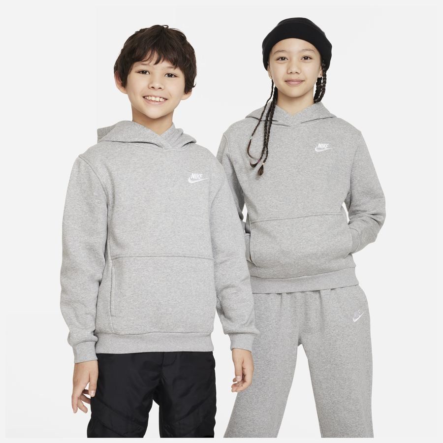 Nike Hettegenser NSW Club Fleece - Grå/Hvit Barn, størrelse S: 128-137 cm