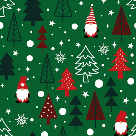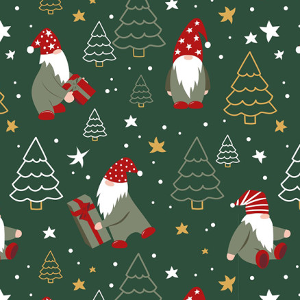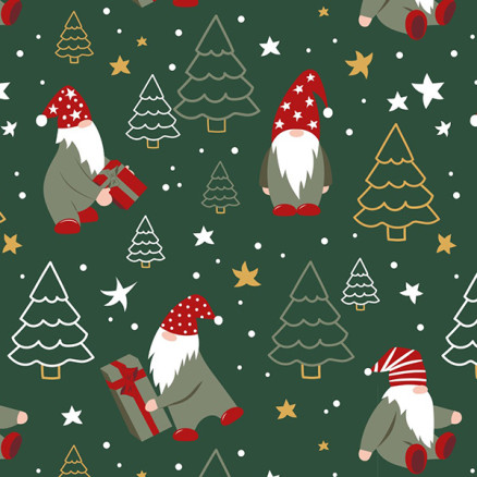 Bomullspoplin Stoff 145cm 025 - Grønn med nisser og juletrær