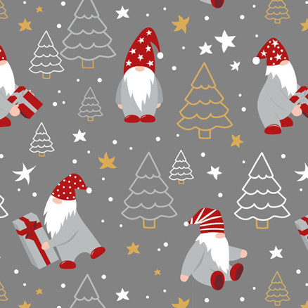 Bomullspoplin Stoff 150cm 764 - Grått med nisser og juletrær