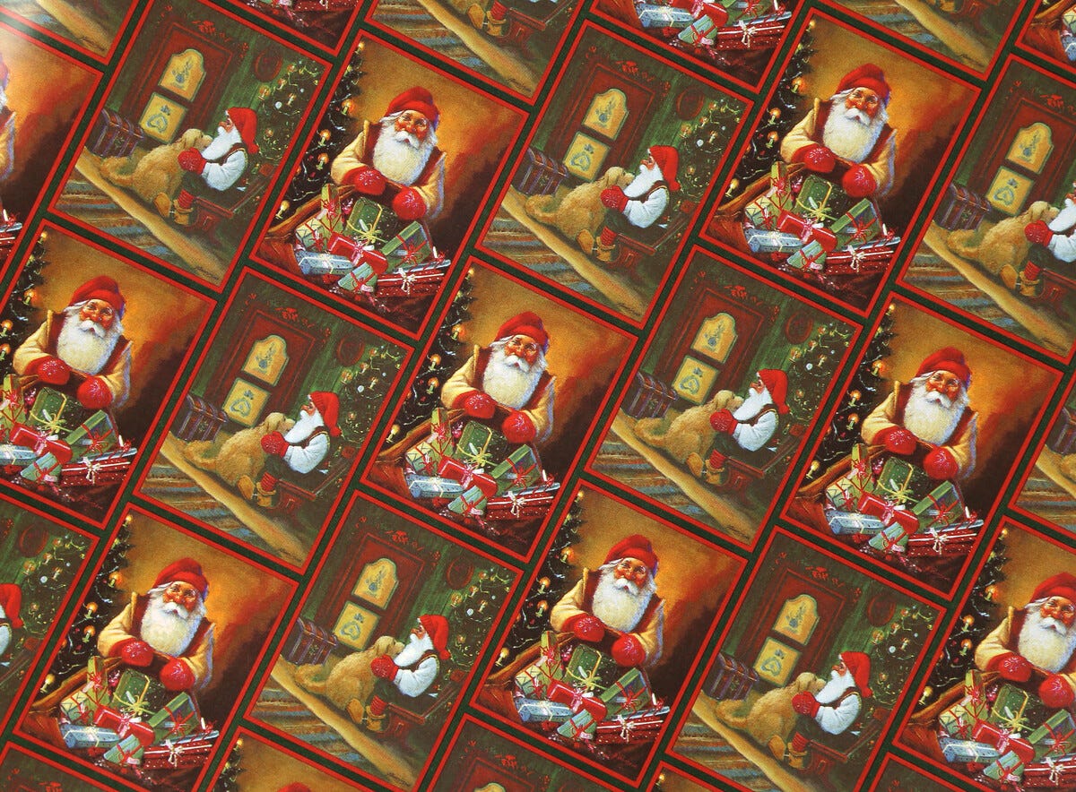 Gammeldags julepapir med nisser, 70 cm x 4 m