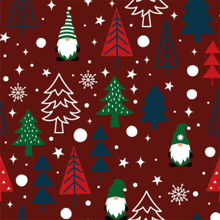 Bomullspoplin Stoff 145cm 015 - Rød med nisser og juletrær