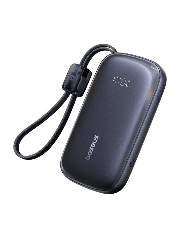 Baseus EnerFill FC21 Qpow 3 Ultra 10000mAh 45W Power Bank with Attached Lanyard Cable - Black Nødlader - Svart - 10000 mAh