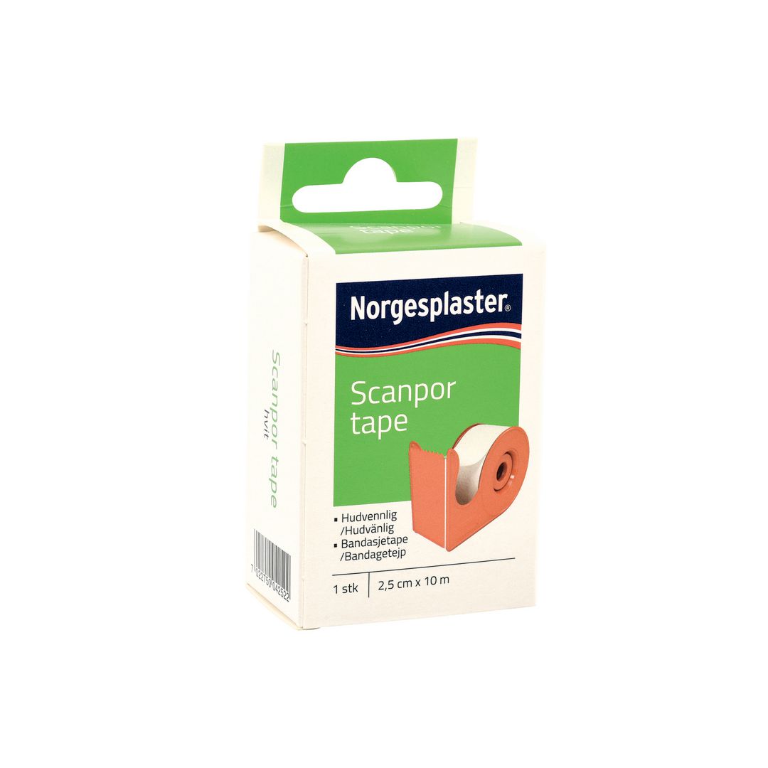 Norgesplaster Scanpor, Tape med dispenser, beige, 1,25 cm x 10 m - 1 stk. Helse & livsstil Plaster Sår og skader