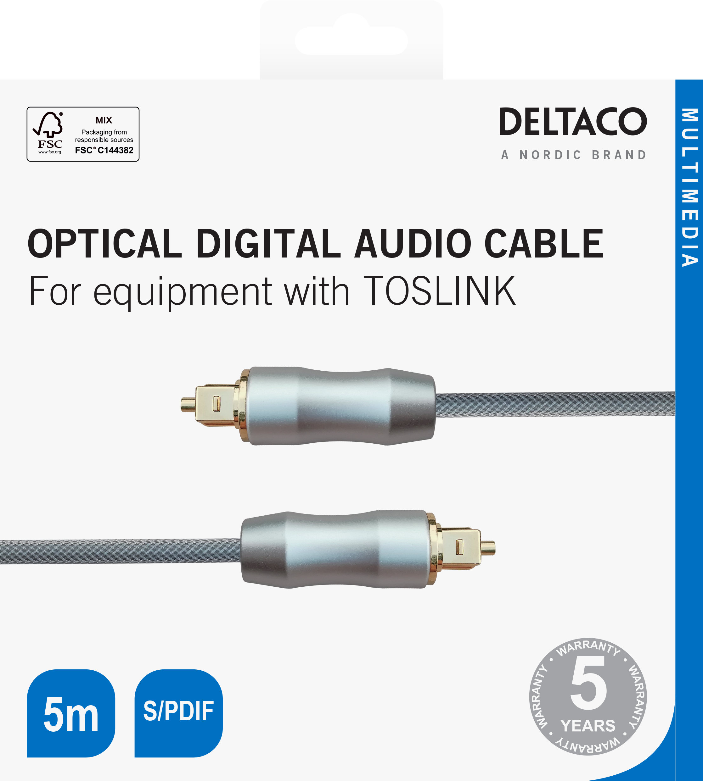 Deltaco High End Toslink Cable optical cable digital audio 5m black