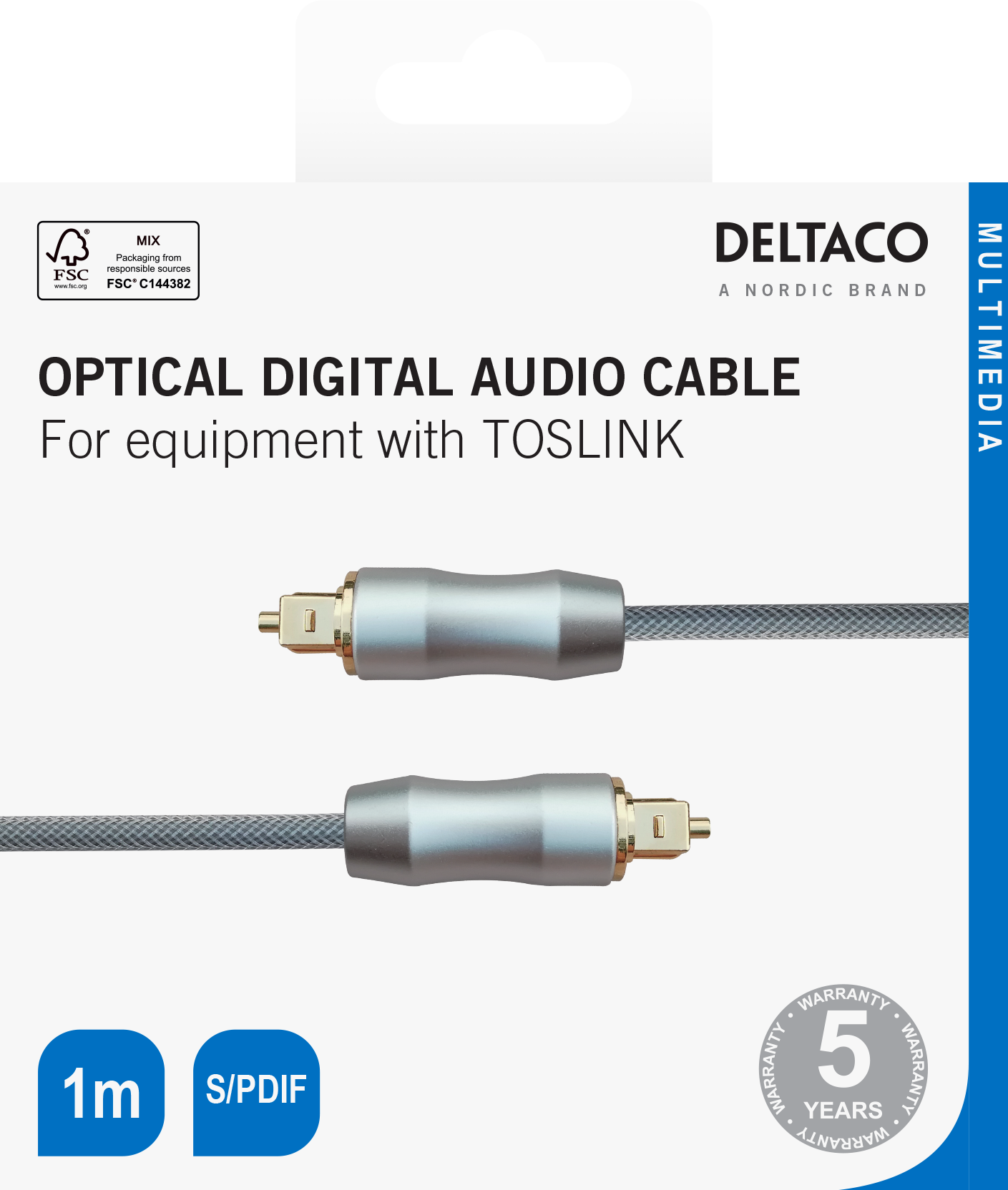 Deltaco High End Toslink Cable optical cable digital audio 1m black