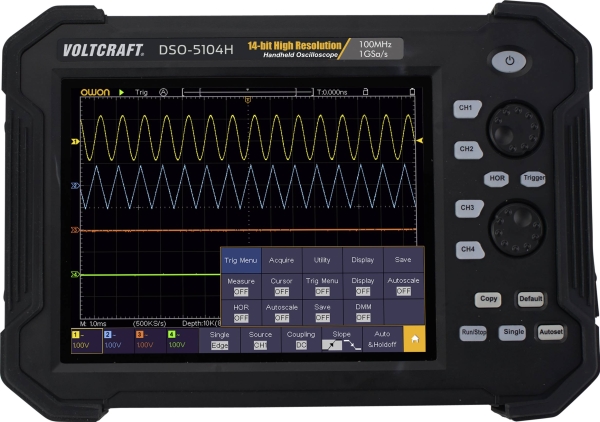 Voltcraft Dso-5104H Batteri, Digitalt Oscilloskop, Håndholdt Oscilloskop (Scope Meter) 100 Mhz 4-Kanals 1 Gsa/S 40 Mpts 14 Bit Digital Memory (Dso), Håndholdt (Vc-11332625)